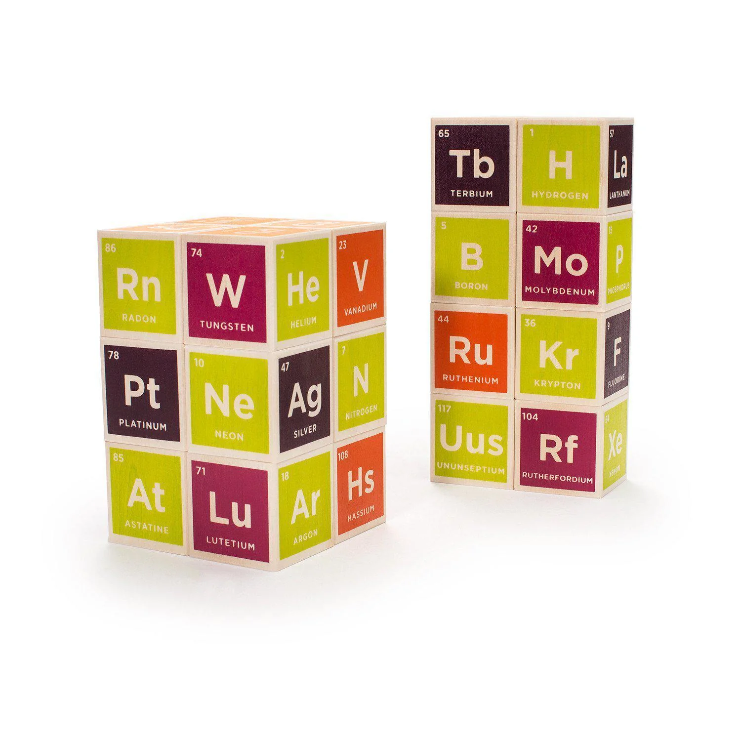 This set from Uncle Goose includes the entire periodic table of elements on 20 hand-crafted wood cubes. Each block contains six element images with their atomic number, symbol and name. Perfect for the family science buffs or even a fun way to learn elements in middle school, this block set is great for all ages.